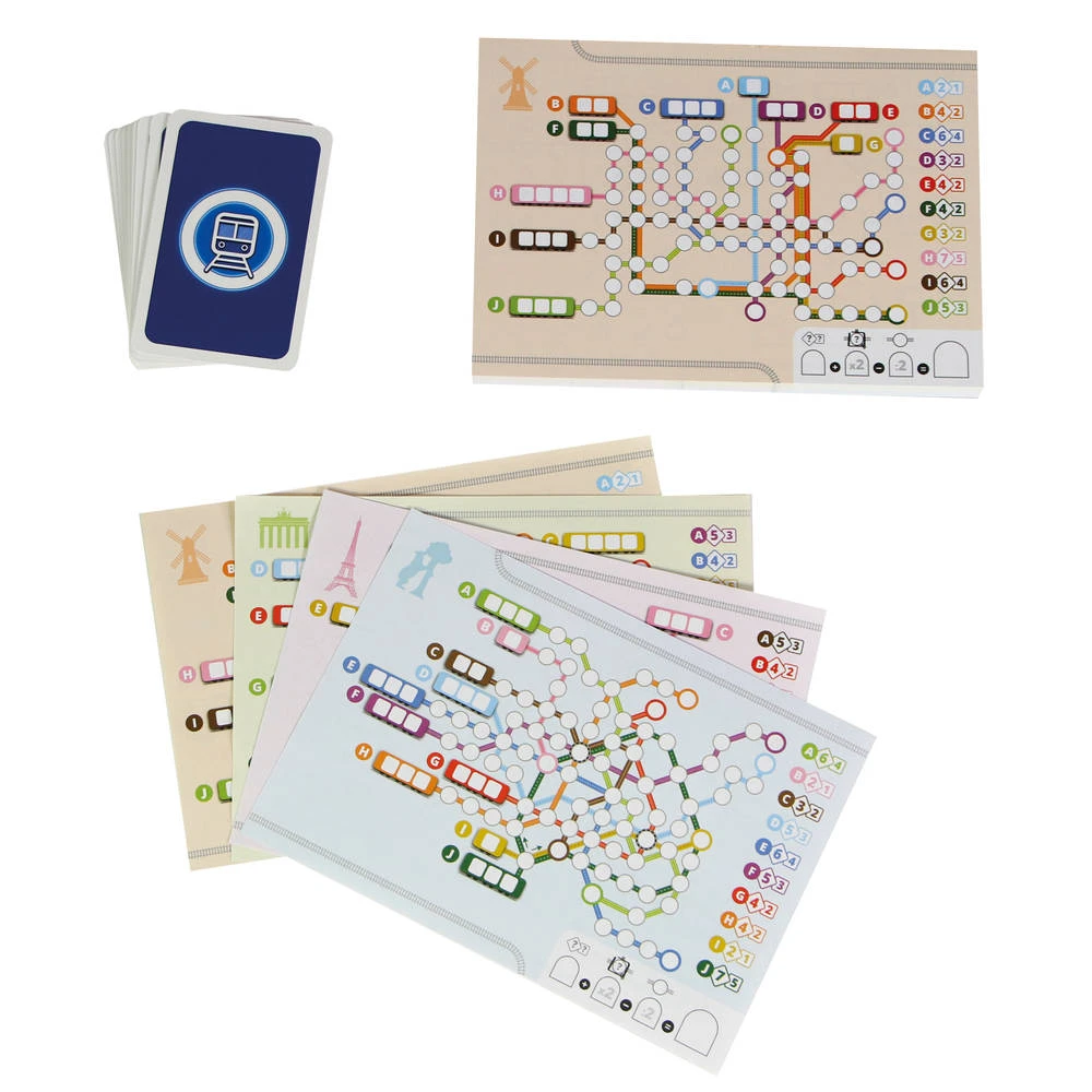 Metrolijn is een spannend kaartspel dat je je eigen metrolijn laat bouwen. Je kruist haltes af op je plattegrond om punten te scoren.