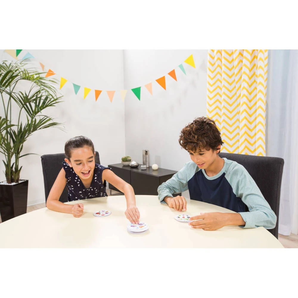 Het leuke spel Dobble Classic is een observatie- en snelheidsspel in vijf spelvariaties waarbij alle spelers gelijktijdig spelen.