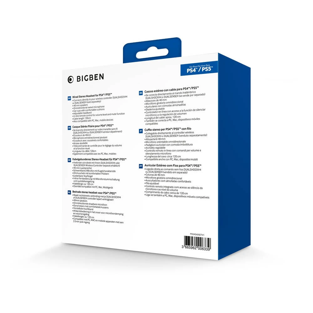 Met deze gamingheadset van Bigben kun je moeiteloos communiceren met je gamevrienden. De headset is speciaal gemaakt voor de PS5, levert een helder geluid en een krachtige bas. Zo ervaar je je favoriete game als nooit tevoren!