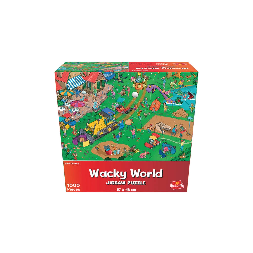 Puzzel je graag? Ga dan de uitdaging aan met deze Wacky World puzzel. Hierop staat een chaotische golfbaan afgebeeld waar van alles aan de hand is. Zo rijdt er een graafmachine rond en zwemmen er monsters in het meer. Jong en oud geniet van deze puzzel van 1000 stukjes.