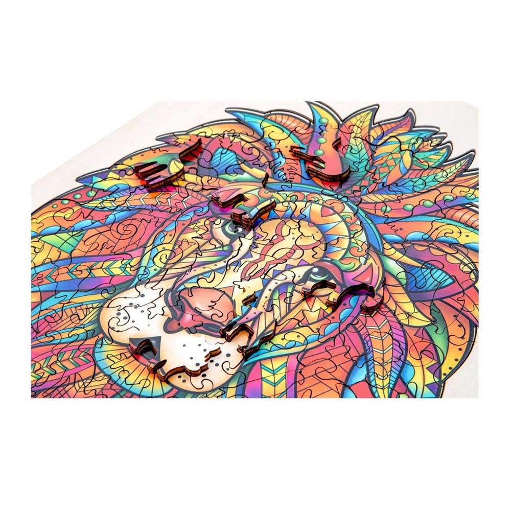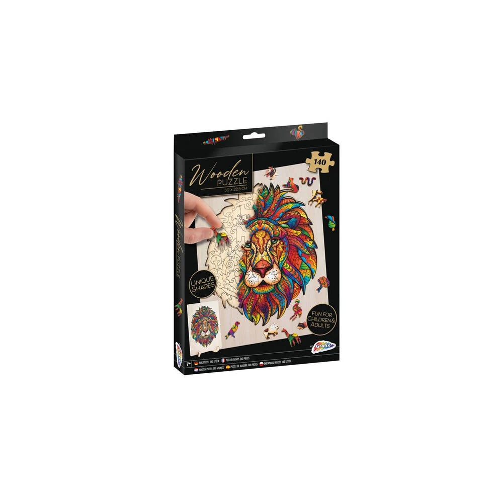 Met deze kleurrijke Grafix houten puzzel maak je een mooie afbeelding van een leeuw. De puzzel bestaat uit 140 stukjes.