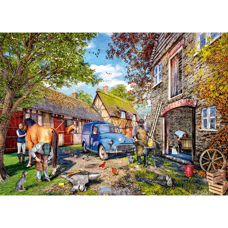 De smid is hard aan het werk in deze Falcon de luxe puzzel Blacksmith’s Cottage. De puzzel is zeer gedetailleerd en bevat 1000 stukjes. Als je de puzzel af hebt lijkt het net een poster.