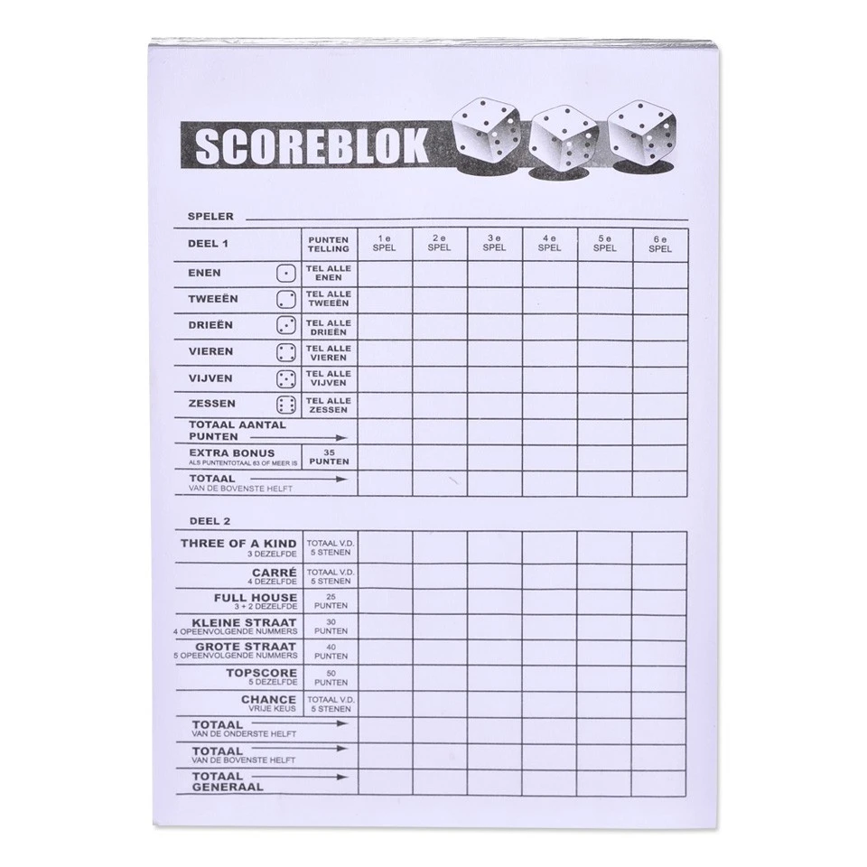 Dit is een scoreblok om de scores van je spelletje op te noteren.