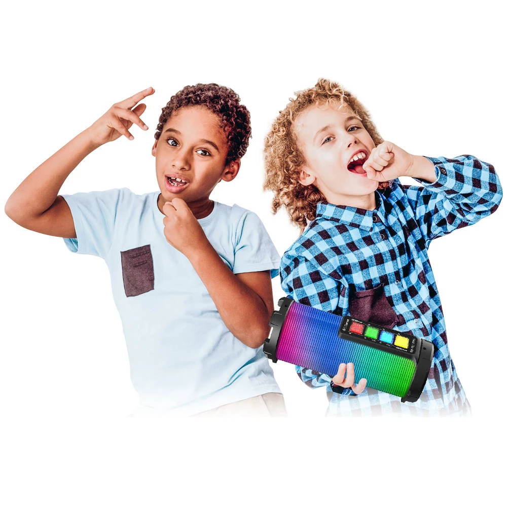 Met deze iDance draadloze Bluetooth speaker kan je je muziek overal mee naar toe nemen. Met de LED-verlichting, drum-, DJ- en geluidseffecten maak je van elke saaie gelegenheid een bruisend feest. Deel je muziek met anderen met de duo modus of speel via Bluetooth je eigen muziek af vanaf je eigen telefoon of tablet. Met de oplaadbare batterij kan je urenlang doorfeesten met deze iDance draadloze Bluetooth speaker.
