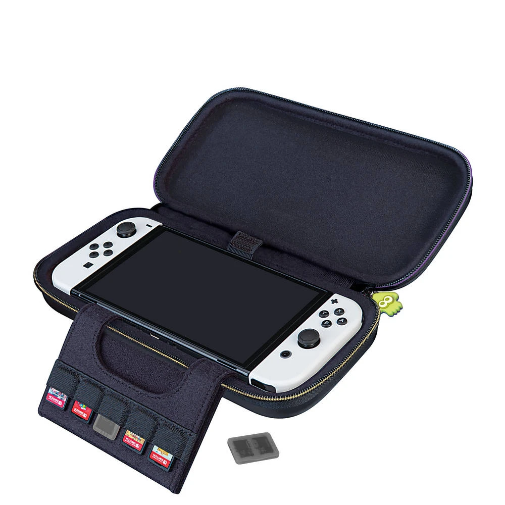 Bewaar en bescherm je Nintendo Switch, Nintendo Switch Lite of Nintendo Switch OLED en je games in deze op Splatoon 3 gebaseerde deluxe travel case. Met de handige ingebouwde verstelbare standaard kan je urenlang doorspelen zonder dat je je Switch uit de travel case hoeft te halen.