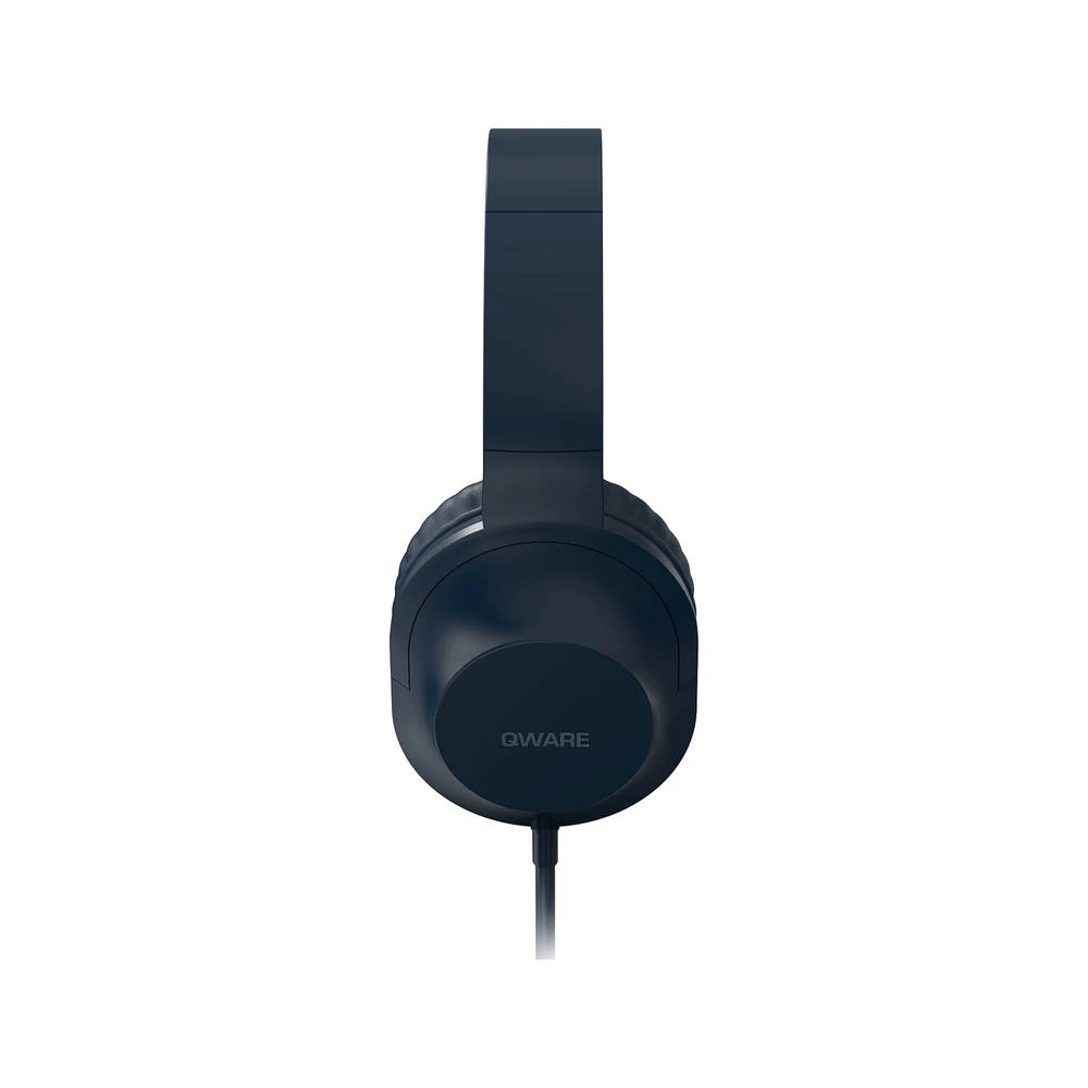 Draag je liever geen oordopjes? Dan is de blauwe Qware Sound bedrade headset perfect voor jou. Deze headset heeft een opbouwbaar ontwerp.