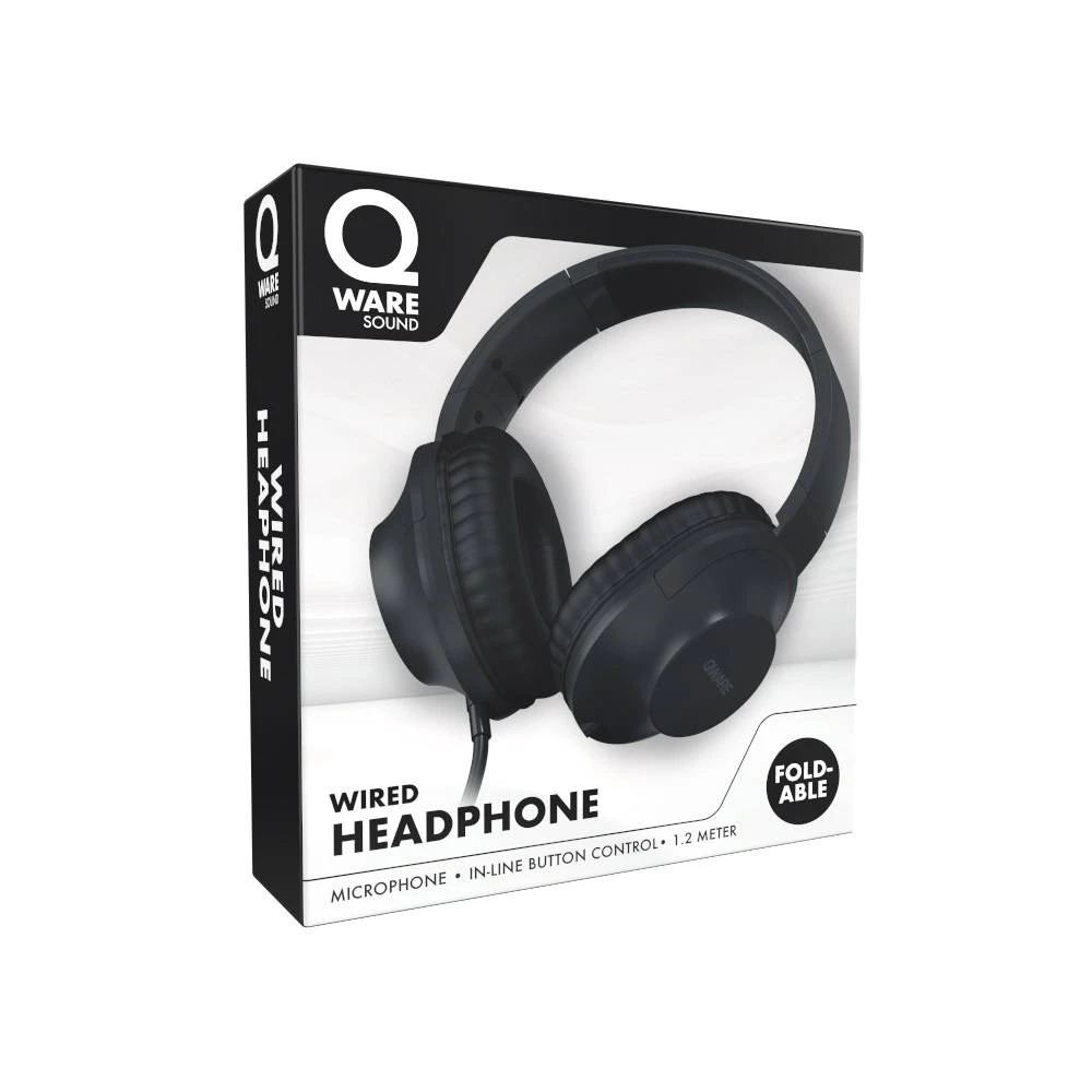 - De zwarte Qware Sound bedrade headset heeft een ingebouwde microfoon.