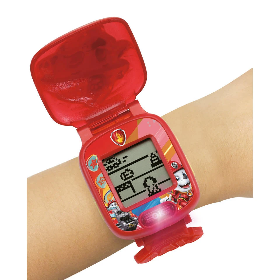 Dit gave VTech PAW Patrol Adventure Marshall horloge laat je niet alleen de tijd zien, maar bevat ook een wekker, stopwatch, timer en vier spellen!